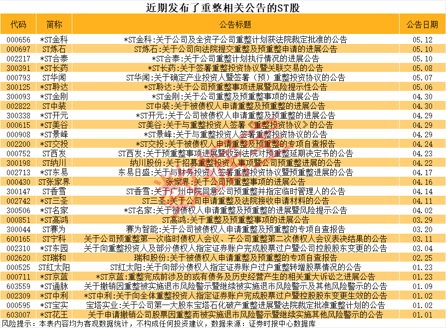 资产重组、破产重组的ST股曝光资产重组、破产重组的ST股曝光