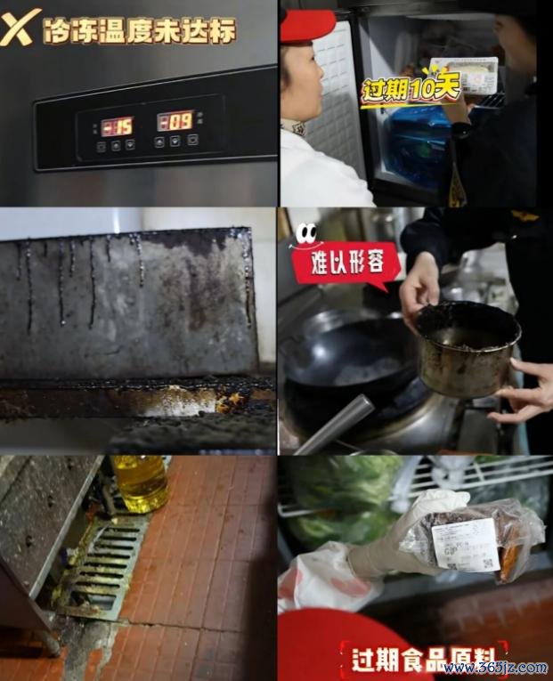 地面糊着包浆的污垢,调料罐黑得像煤块,冰柜里还藏着变质的番茄、过期十天的香干和豆腐......