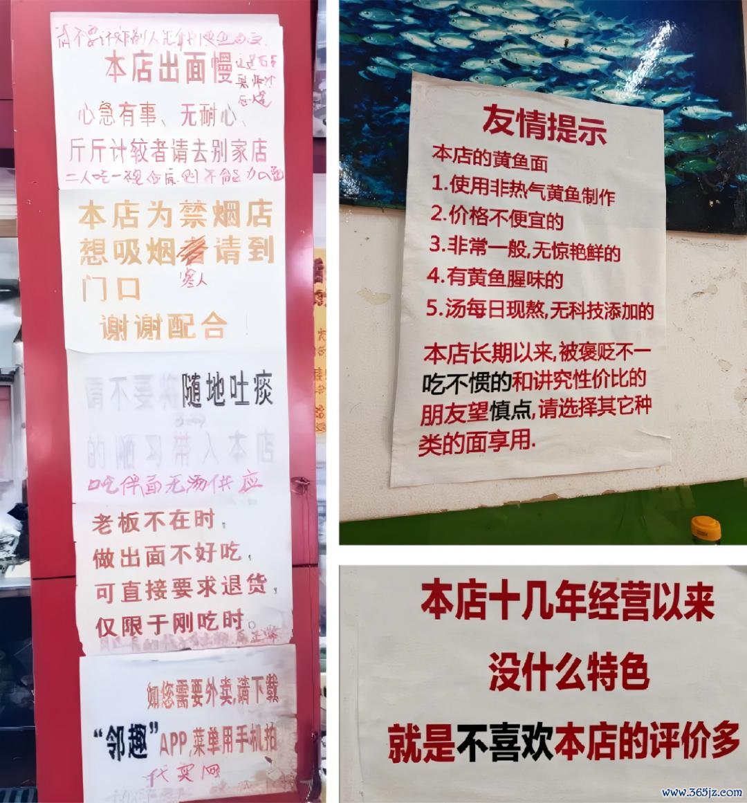 这一碗售价高达55元至100元的黄鱼面,老板也很硬气,“嫌贵别点”、“心急勿入”、“不接受差评”......